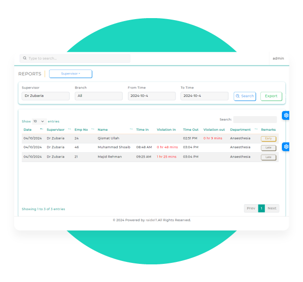 Keep track of employees who consistently arrive late with the latecomer's Report. Identify patterns of tardiness, enable timely interventions, and foster a culture of punctuality.